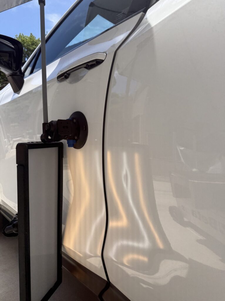 ドアパンチによるヘコミにはデントリペアが有効な場合が多いです。