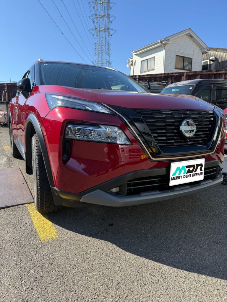 本日は綾瀬市にて、日産 エクストレイルのドアパンチ被害による3cmヘコミのデントリペアのご依頼をいただきました。